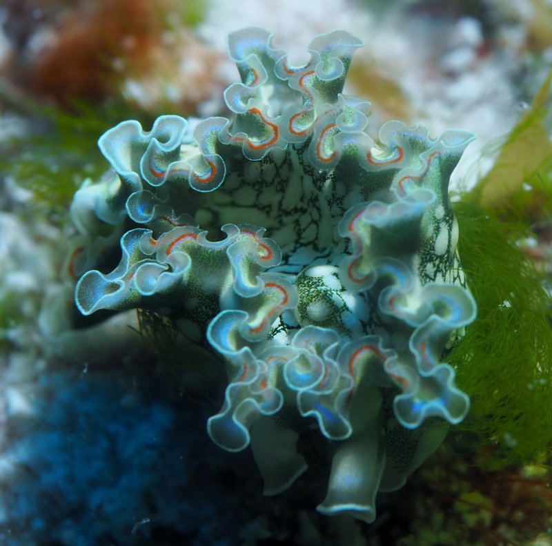 The frills here in bonaire are much denser and generally fully obscure the body. I had been taking pictures of them for years before I discovered they have dots.I wonder if you shot it from above whether you'd get something fancier or brighter? What are you using for a strobe? Here is my photo from yesterday's dive...