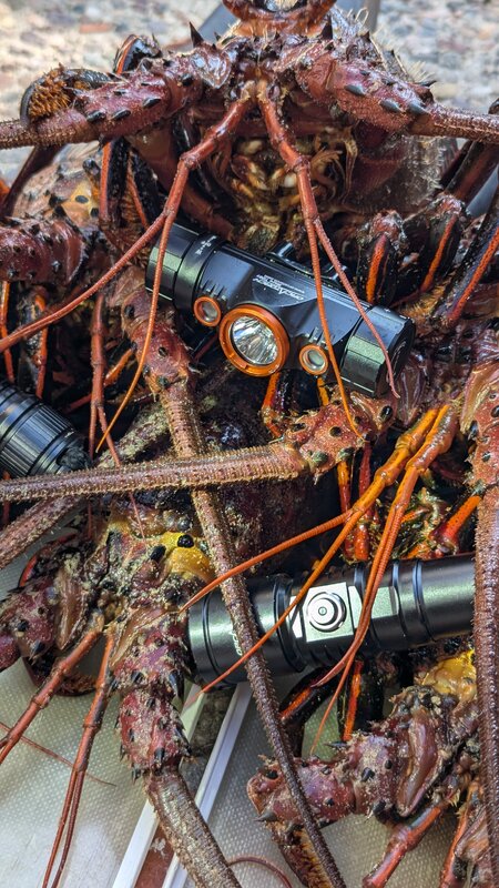 Let’s take a look at Sam Chun’s harvest using the OrcaTorch TD01 Dual-Color (red-white) headlamp and OrcaTorch D550 light with wrist strap to hunt lobsters.