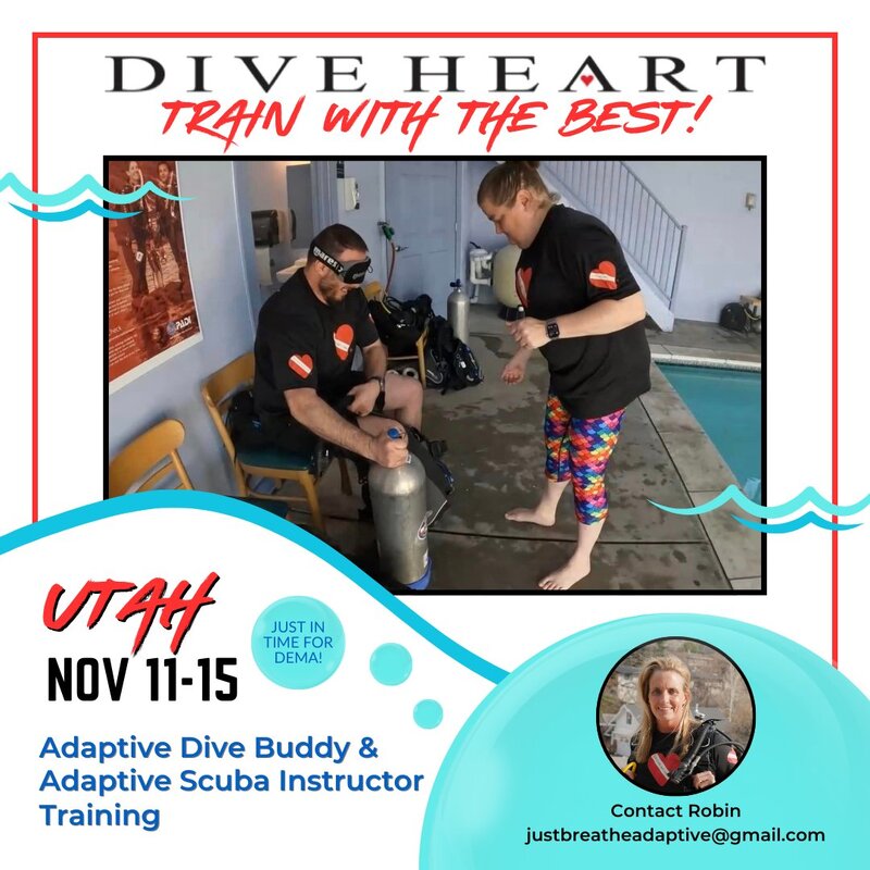 Make the most of your trip this year by joining Diveheart's Adaptive Dive Buddy Training in Utah from November 11-15. Train with Just Breathe Adaptive Scuba and gain the skills to empower adaptive divers. Let’s make a difference together! Contact Robin at justbreatheadaptive@gmail.com for more info.