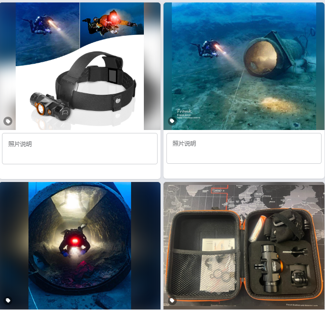 Pic 4, Orcatorch D560 mini mask light: Need 5 scuba divers to test it. It offers 3 colors (black/blue/red).