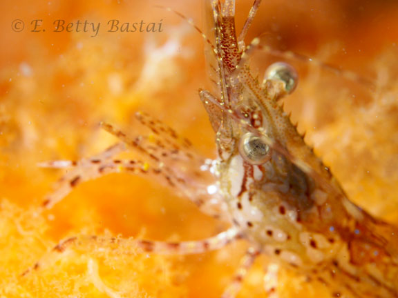 The second image is a close up of a coonstripe shrimp standing on an orange sea cucumber. Would you consider the focus on this image acceptable? (Well I think it could be better)