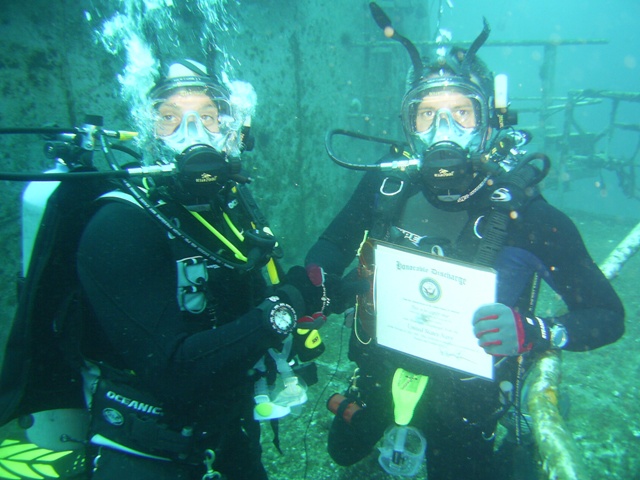 The first person to reenlist underwater on the USS Oriskany, 22 miles off Pensacola in 80' water underwater in July 2007.