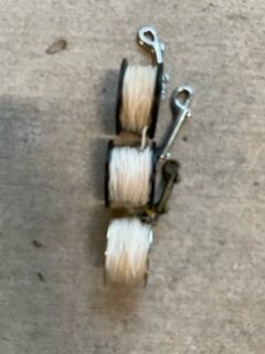 Group of three spools. Two are Halcyon one is off-brand and metal instead of Delrin. Halcyon ones show wear. $70