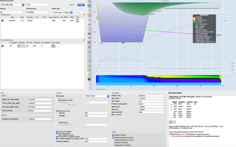 Please note that even though different implementations each claim to be ZHL-16x, this algorithm is not specified to a precision that does not leave some room for interpretation. I blogged about this here: Why is Bühlmann not like Bühlmann – The Theoretical Diver