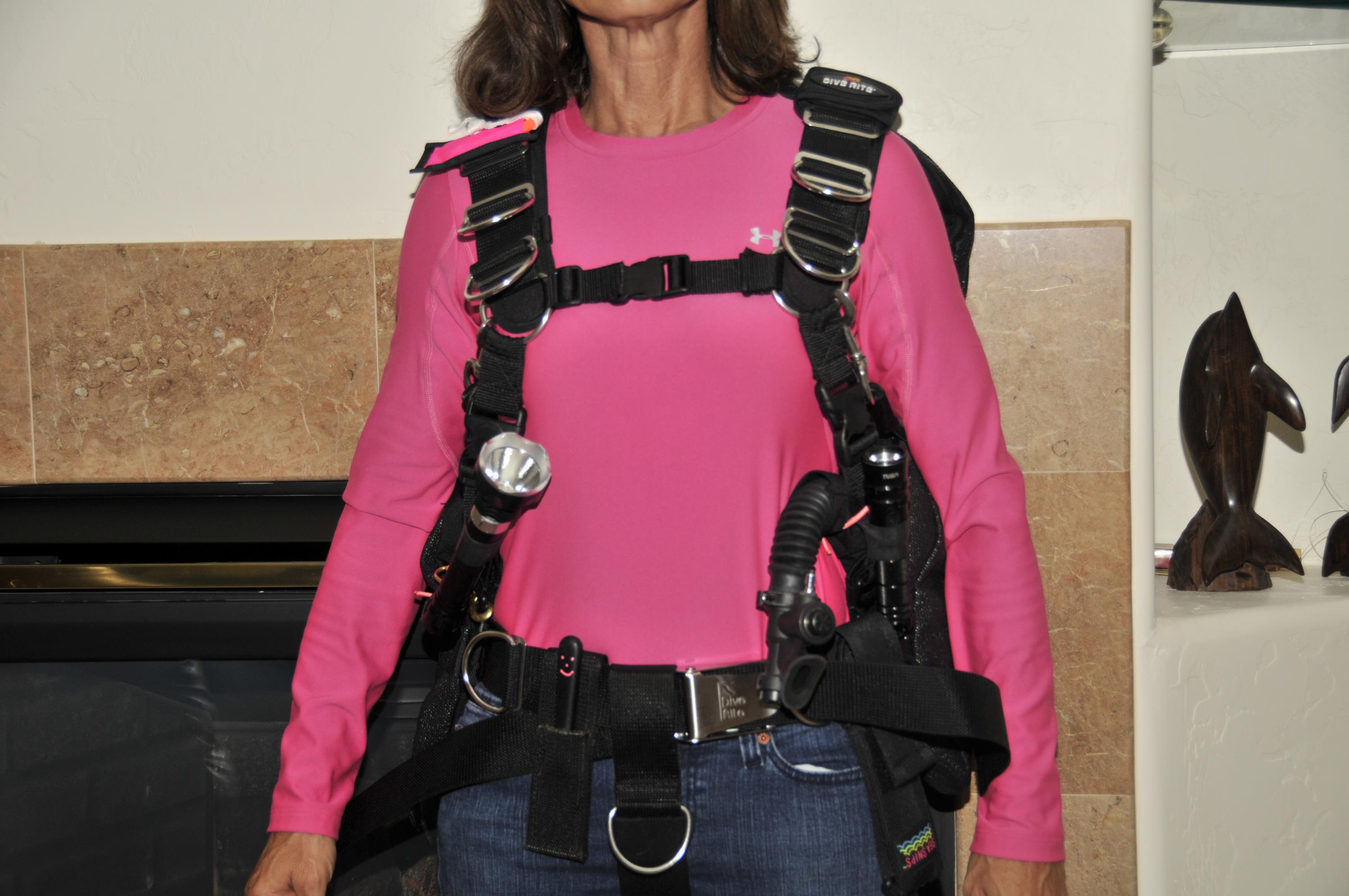 You wife routes her chest strap below her drysuit inflator valve but across her breasts or above them? She will be the first woman I know who can stand that discomfort.
