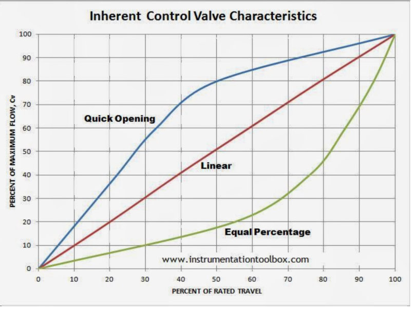 My impression of scuba valve is that (on this graph) they would be defined as quick opening. The orifice to seat interface opens rapidly at first and later turns do little to allow for increased flow. In "valve knob turn" units this is going to be somewhat contingent on whether you have the fine or coarse threaded HP seats though. At least for the more common coarse threaded seats, the valve is fully open within one rotation of the knob and the HP seat orifice becomes the flow limiting restriction.