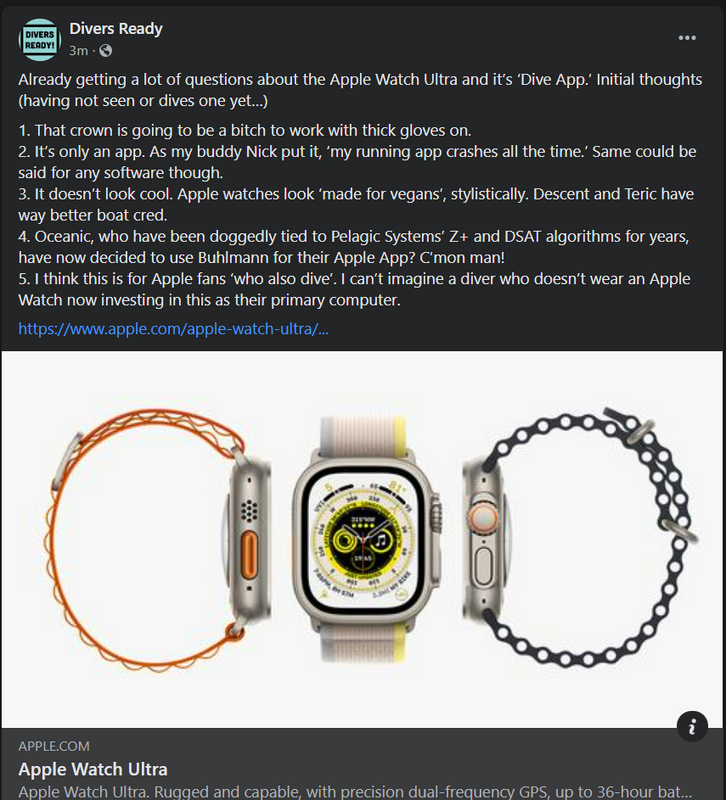 Overall, I'm encouraged that development and innovation is occurring in dive computers. One of my two computers is a little over 12 years old with 1806 dives and 1903 hours on it. It will die and need to be replaced someday, I'm looking forward to having options.