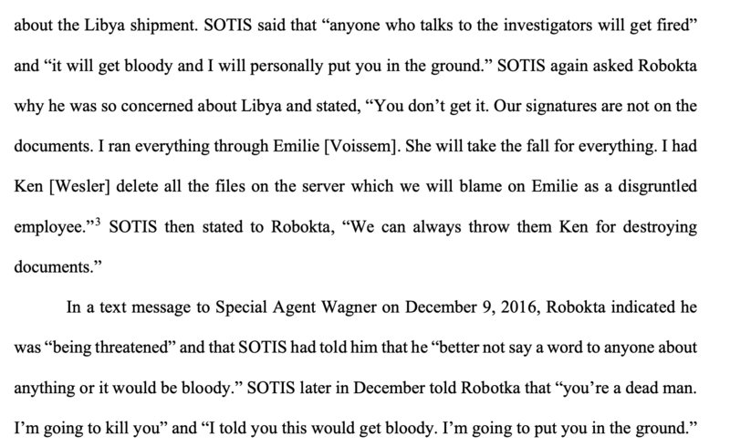 "SOTIS was the majority owner (80%) and VOISSEM the manager of Add Helium LLC, a Fort Lauderdale company that sold, exported, and trained on the use of diving equipment. In the spring of 2016, Osama Bensadik, a Virginia resident, contacted Add Helium to purchase over $100,000 of rebreathers and other diving equipment that SOTIS and VOISSEM were to ship to a third-party entity in Libya."​