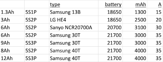 Of course these packs were not designed with a DPV in mind, but to meet powertool requirements. So considering a maximum current draw of 22.8A, using 15 Samsung E50 batteries in a 5S3P configuration meets the Blacktip requirements. That's a 15Ah pack.