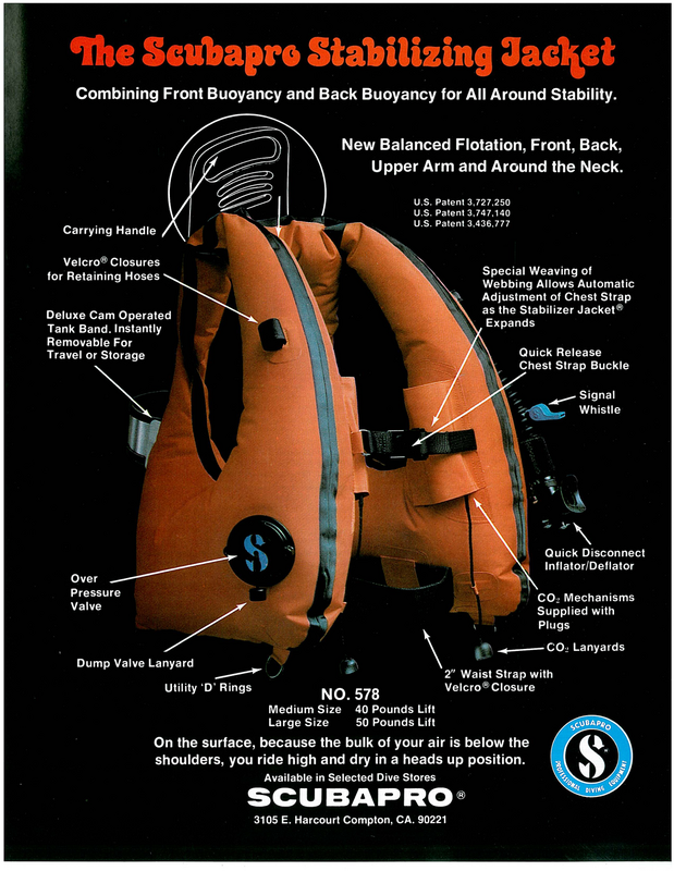 In 1975 it was neoprene wet suit, air tanks with reserve and a single regulator. In 1980 it was air tank with two regulators, a pressure gauge, a BCD and the first analog deco computer, made by SOS and called DCS (bent-o-matic).