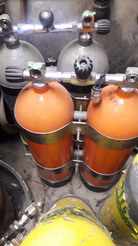 - The volume of compressed gas would in around 1.2m³/42Ft³. The logic is that the standard recreational configuration would be low profile doubles. Triple and quad manifolds could be used for Technical diving.