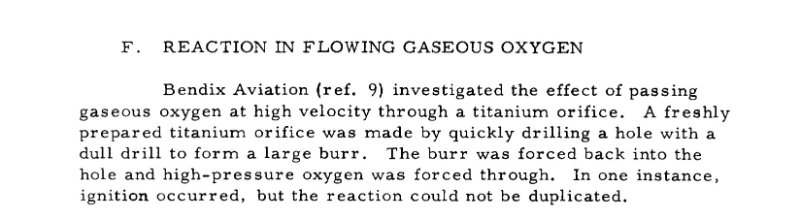 Oxygen compatible greases don't make a titanium regulator safe in a ~100% environment. The O2 compatible greases are used because hydrocarbon based greases in combination with O2 form a shock sensitive explosive. The O2 compatible greases are generally flouropolymers e.g. PTFE or Teflon based. They are extremely toxic if combusted, but if that is occurring you have problems anyway.Makes total sense. I am curious about nitrox. You mentioned that titanium is usually NOT considered stable when used with pure oxygen at a pressure higher than 2atm. But what about ppO2 in mixed gas? I know some particles and oils could act as catalysts for the titanium oxidation, making the reaction faster and exothermic -> dangerous. This is why we use special greases for oxygen-compatibility.