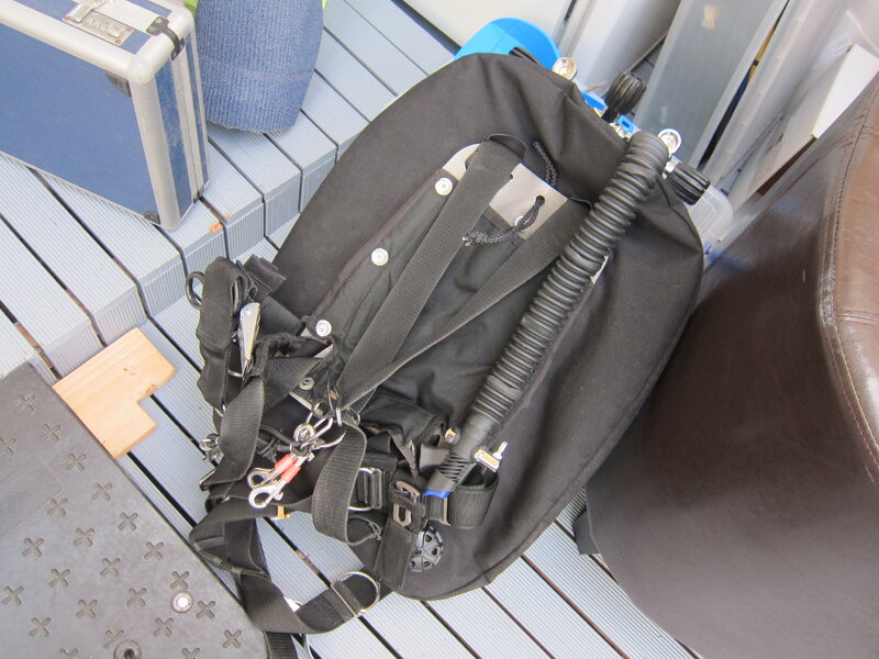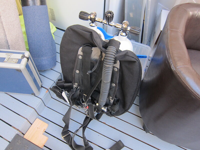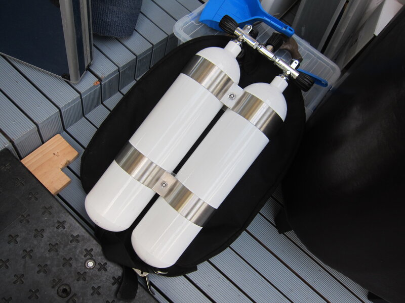 Interesting setup, what size are those tanks, and how balanced do they feel in the water? I have a 32lb Mono, and use it for single-tank diving. I also have a manifolded pair of HP100's and a an Apeks 45lb, but the dual-HP100's are really too big for my needs most of the time. I have been thinking about using the 32lb OMS Mono + a pair of double LP50's, or possibly AL50's if I can find them.