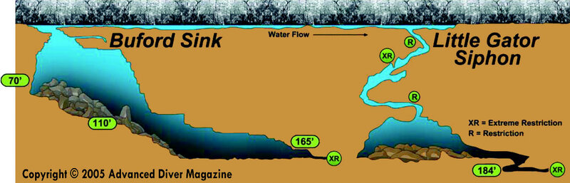 I think I recognize that image/cave from dive-talk, where they frequently talk about cave-diving.The vis can be really good, but it can also be pretty terrible. Below ~70', you're in an overhead environment. Past the big rock (~110' there on the pic) it gets a bit smaller but it's still pretty open top in general.