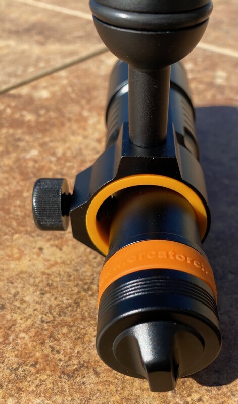 I don't need the red and UV capabilities of the D710V, so I ordered the OrcaTorch D530V. I am not happy with the sloppy fit between the ball joint bracket and the body of the D530V. There is a 4mm gap, and as a result the light wiggles around too much in the bracket, even if the set-screw is tight. After some research, I learned that the bracket fits lights from 23mm to 27mm. The D530V has a 25.5mm body. The D710V has a 27mm body. The bracket has an inside diameter of about 29mm. This explains why the D710V fits better than the D530V. I also wish the bracket was closer to the lens, which would make it easier to keep the front of the light behind the front of the camera/GoPro. I'm sending this one back.