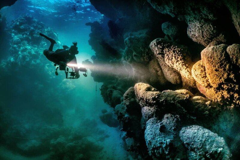 On the border of light and dark-The Canion Marsa Alam-Egypt-D511 dive light.jpg