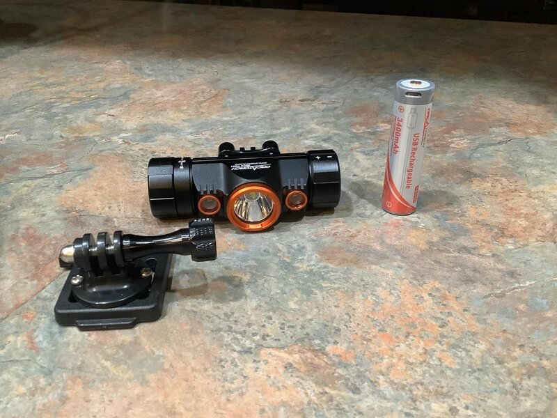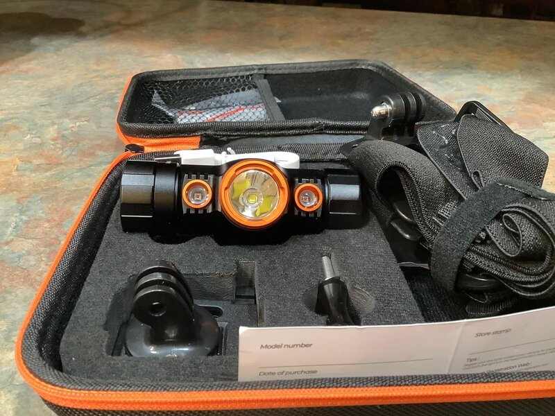" The output is the first thing I noticed. Has a nice wide spot beam like I have seen on many dive flashlights. It can mount to a helmet with the included Go Pro style mount. There is also a headband with the same mount to wear directly on the head. The included 18650 battery has the charge port on the battery or you can charge it on your tabletop smart charger. Also included is a very nice carry case. Three spare O rings and a charge cord are included as well. The rotational switch is easy to use and since on the end of the light it is easy to manipulate even with gloves on. The lower 450 lumen output still puts out sufficient light and the 1200 lumen high setting is incredible compared to other headlamps of the same lumen range. It had solid but balanced feel to it. I am very happy to add this one to my collection. Only one thing I would change woiuld be to add another output setting of around 250 Lumen to give runtimes that would make it good for cave exploration above water. It is a very cool looking light. I own a few other Orca Torch products and have yet to have any issues. I was eagerly awaiting the arrival of this one and it did not dissapoint. "