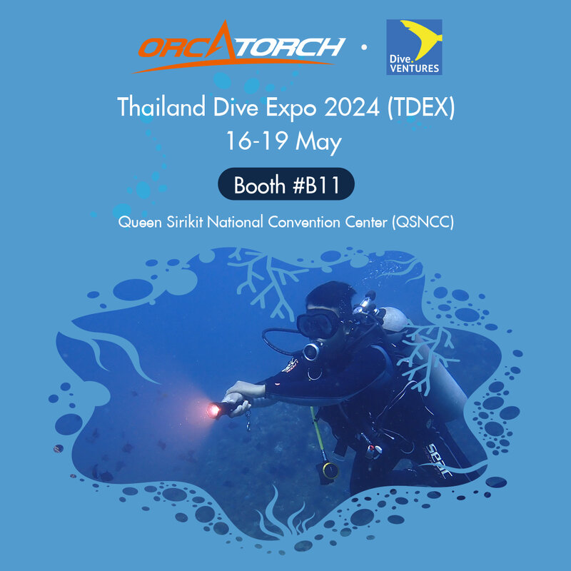 We are pleased to inform you that Dive.VENTURES, as the exclusive distributor of OrcaTorch dive lights, will participate in the upcoming Thailand Dive Expo 2024 exhibition held at the Queen Sirikit National Convention Center (QSNCC), from 16-19 May 2024