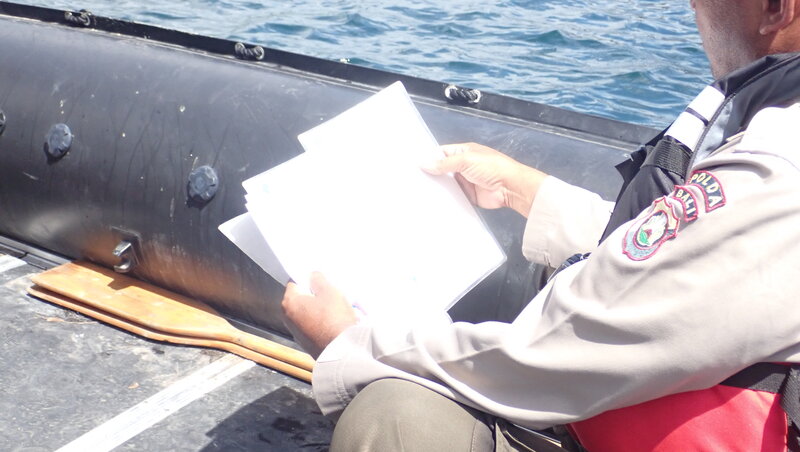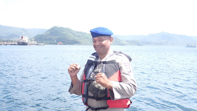 Yesterday a diver got separated from his guide in fast currents. Not Geko Divers. Diver was found by a fast boat ferry passing by so that diver was lucky. Anyway today the marine police were out checking the documents of dive operators, checking crew and customers. Vis is maybe 20m and you wont see a diver wearing black in that.