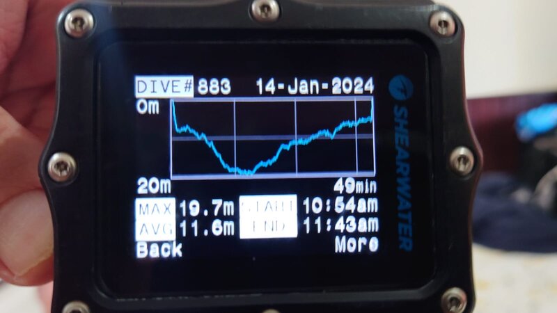 So we did local sites again. Second dive when we got to 19m depth we got hit by a very fast down current going out to the sea. Not where you want to be for sure. Bubble trails going down is fun to see... sort of lol.