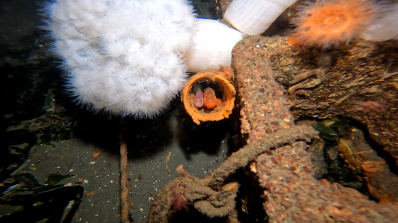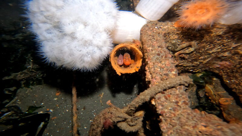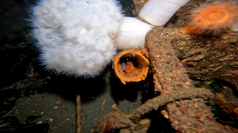 Dove Alki Junkyard last night and came across these two little beauties. The orange one looks like a wolfy to me but I've been told they're both gunnels. The square jaw with narrow head and pectoral fin along with the coloring suggest wolf eel imo. I don't have a clear shot of it but the teeth on the orange one were visible. I'm not trying to argue with other diver who is also on this site, just hoping for another set of eyes and some education for me. Thanks