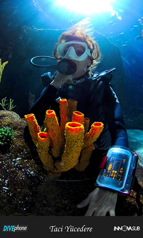 Yep, that's what I meant above by "physically attached". High frequency RF attenuates very rapidly in water, and extremely rapidly in salt water. This question comes up frequently- and it's not unreasonable, since people are used to using so many wireless devices. Unfortunately, like many things underwater, it's just not that easy.