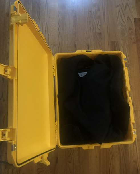 With the loop, NERD, and handset removed, the suitcase weighed 49#, ready to fly.