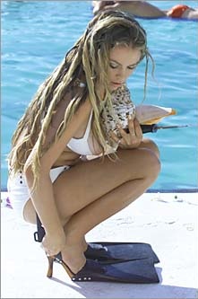 I want to do that, but also wear them on the "wrong" feet, of course. I'd *really* like to see some large high-quality vinyl smiley stickers to decorate the top and bottom of each.Scuba_Jenny:As far as pimping gear... I always wanted to paint Left and Right on my jetfins.