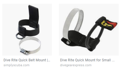 Here are two ways from DiveRite to mount a canister on a 2" belt. Original version on the left, new version on the right. Easy, fast, secure.