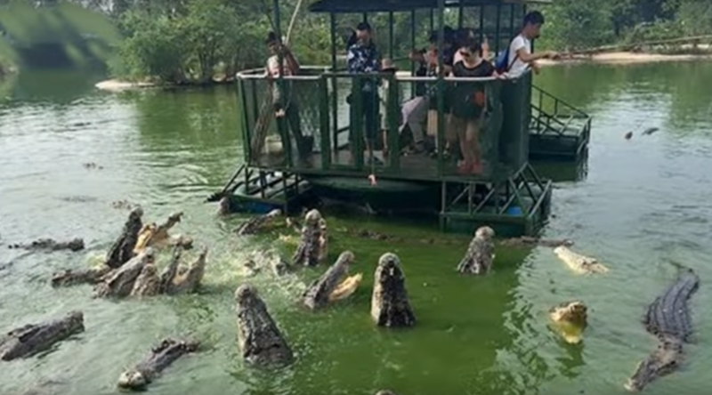 Years ago Punta Sur Eco Marine Park used to do a pontoon float into the lagoon and feed the crocs. They'd call the crocs in exactly as you described. I went once to experience it. All the guests ran to the bow of the boat the moment a croc was spotted. The bow actually struggled to stay above water level so many people crowded the front. But the croc didn't stop coming towards the boat and suddenly everyone was backpedaling as fast as they could tripping over each other but still trying to get photos. I laughed but figured it was just a matter of time before it became an issue. I heard from guests about a year ago that the park no longer sends the boat into the lagoon to feed. Probably a wise decision.