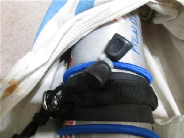 I use old inner tube material, and even when diving with dry gloves and two layers of gloves underneath, I am able to get a hold of the inner tube material. However, I can't grab it against the bare tanks but have to grab it near the cord where it is lifted off of the tanks surface a bit.