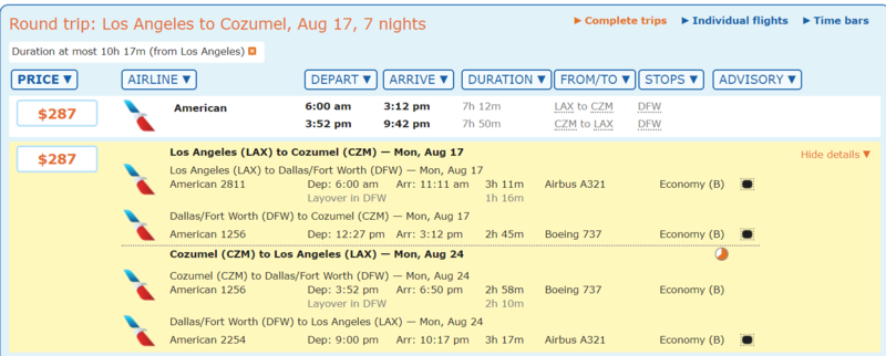 Ok, well American doesn't offer the $228 fair from that airport. I think it was Ontario. If you prefer LAX, Interjet offers that fair, but I wouldn't suggest them. I'd go with American for $287. Book these dates and come to my birthday dinner. (Ignore the first flight as it doesn't allow two hours to clear I&C in DFW.)