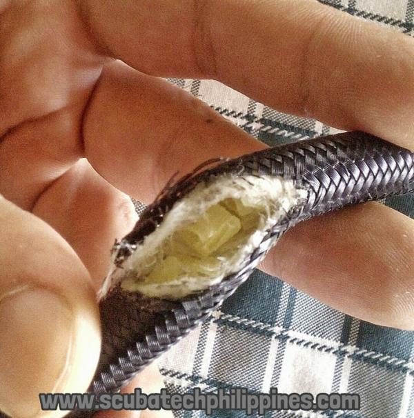 More info, apparently the Yellow hose was a Miflex, the guy apparently cut open his Miflex BC hose and found the same deterioration.