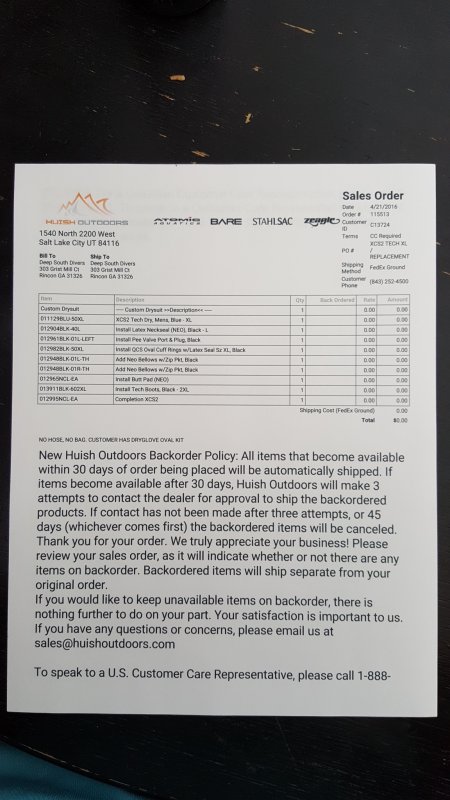 First, he apologized for it taking so long and claimed it as his own fault personally, which deflated my frustrations pretty quickly. He then explained that they'd been testing the suit rather rigorously, since it was a "Gen 2" SB and still having problems. I initially thought he was going to try to void the warranty on the suit based on the fact that it was being used commercially, but instead simply told me that the suit wasn't really built for the extreme conditions I had been using it for, and offered a brand-new BARE XCS2 in it's place, which he assured would be much more capable of handling our rigorous dive schedule and harsh conditions.