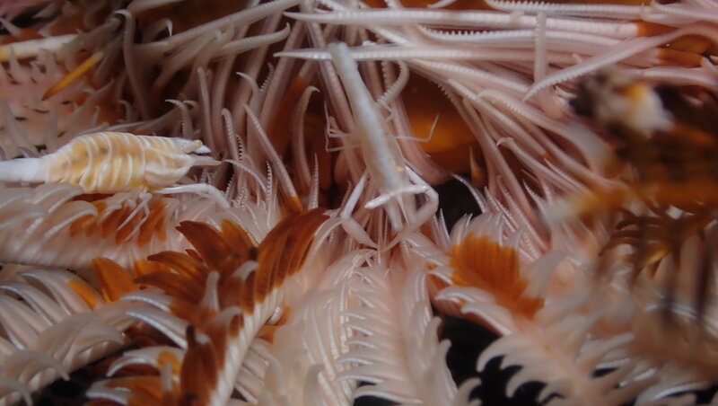 The dive master used his to hold apart the feather stars so we could take pics of the shrimp inside. If you try to use your fingers to hold it open they have these little sticky tips that stick to your skin!