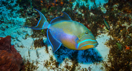 You are correct, thank you for the clarification. The blue colored triggerfish we saw was similar to this one on the photo. I believe is a Blue Queen Triggerfish.