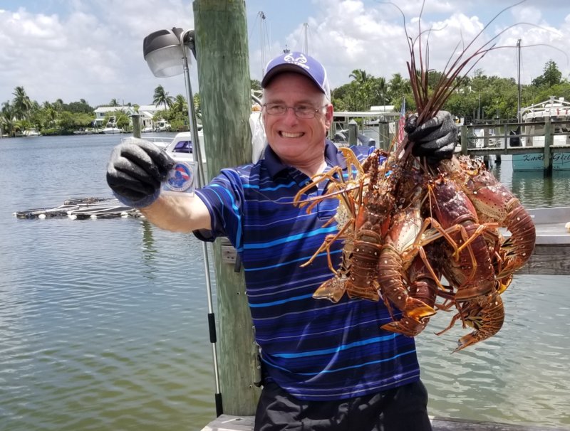 We dove on Jupiter Dive Center's Republic IV both days of Lobster Mini-Season. Capt Tom Smith zero'd in on the generous lobster spots and a steady current for no-finning to find each one. 80 degree teeshirt diving and top to bottom clear viz. I entered the FWC's Lionfish Challenge this year and if you Registered > Caught 25 LF's > Send a signed picture,,,,The FWC sent you FREE a 1) a DriFit shirt, 2) Raffle prize entry, 3) LF Coin to catch an EXTRA LOBSTER over the limit legally each day for just mini-season. I quickly hauled 13 lobsters with my coin!!