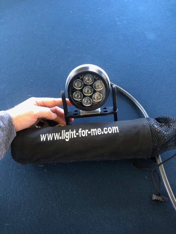 The portable Sun...this is a serious serious dive light I used on approximately 30 murky north Atlantic wreck dives….Light For Me 7xre with charger, battery holder and tank strap. 5 hour burn time on 100%. I always cleaned it well and have maintained the battery. I recently tested it in the sink and it still ran for a complete 5 hours on full power. Retail is $1000 new minus tank strap. $400