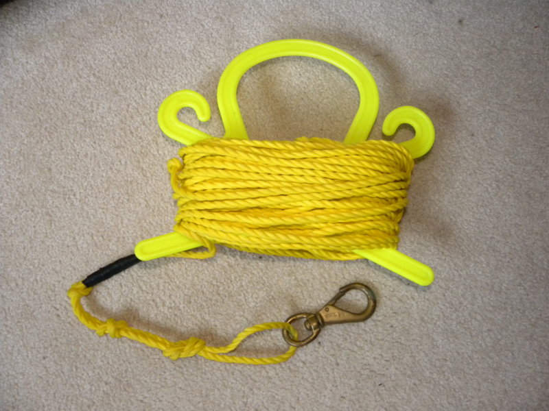 I used to use one of those for my flag (the kind with the styrofoam ball and a lead weight under that). Then, on one trip I forgot it and grabbed a reel from my sad bag. It's just a diverite safety reel. I found that I like using a reel much better than the yellow handle thing and never went back.Used this setup for years. 100 feet of line with knots every 10 feet so that I knew how much line was out. Snap connector on the end for attaching to the float.