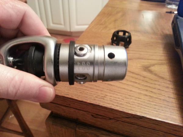 Earlier in the thread, we had a brief discussion about whether a reservoir is necessary. To recap: if the reg is perfectly filled with grease without bubbles, then the inner tube over the holes will transmit sea water pressure to the piston, and probably give enough to be safe, BUT ON THE FIRST DIVE ONLY. The reason is that when you pressurize, some grease squirts out of a tight closure as the piston rises and seats. There's not much further movement during the dive, so the inner tube MIGHT be adequate.