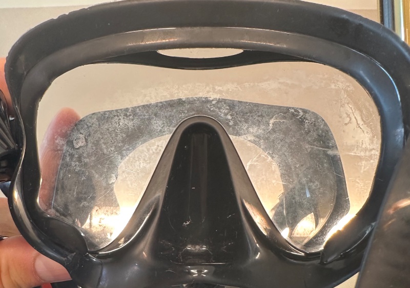 Well, I just brought the white vinegar today and poured it on the mask for a day (see the picture, below). We’ll see how it does tomorrow. If it’s not working, then I try cleaning vinegar tomorrow.Try “cleaning vinegar” available at Home Despot, at 30% concentrations (as opposed to the typical 5%) — which I regularly use, both for glass and while servicing regulators . . .