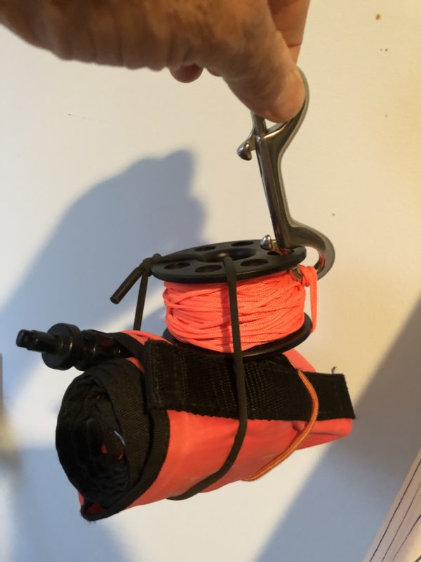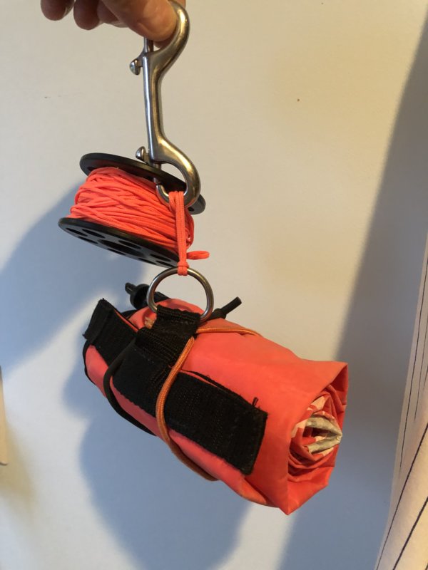 I use different sizes and the one in the video is a little different than the others because it came with a bolt snap sewn into the webbing of the dsmb. Here is a before and after picture of my wife’s.