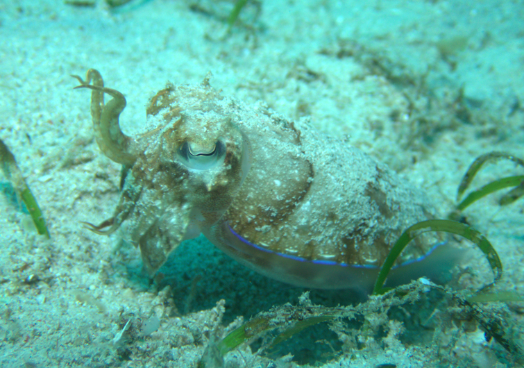 The larger cuttlefish is most likely a common cuttlefish (Sepia officinalis)