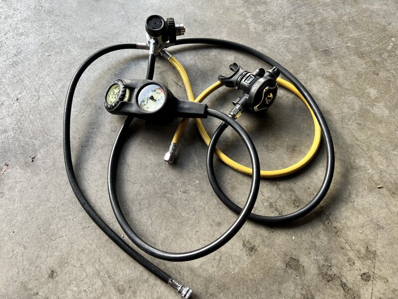 Up for sale is a Scubapro DIN MK25 first stage and S600 second stage for $300, free shipping within continental US or pickup in San Francisco Bay Area, California. I’m the second owner, used for about a year in the waters off Monterey Bay, California. The MK25/S600 have been well used but also well maintained. The last service was six months ago and has been stored since. I do all of my own service/maintenance. The purchasing party will need to have a certified technician verify/confirm that the MK25/S600 are functioning properly before use. Please let me know if you have any questions.