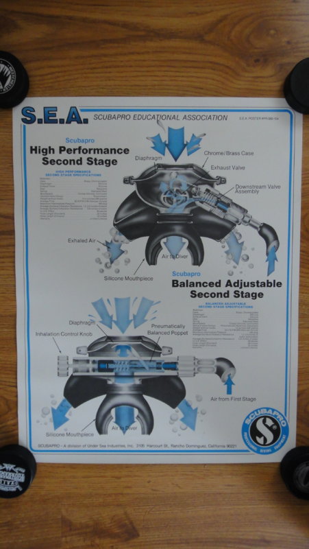 The SCUBAPRO are of individual stages and include the HP, Bal Adj, G200B, G250, D300, D350, MK 5, MK 9-10, MK X, MK200, Air2-2nd, Air2-3rd, and Magnum Speargun. These are thicker poster paper and frame well.