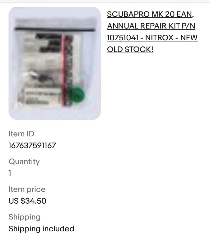 Sold! Scubapro MK20 EAN service kit - $31 shipped