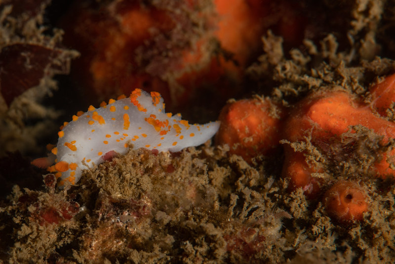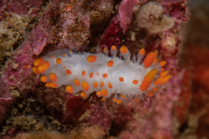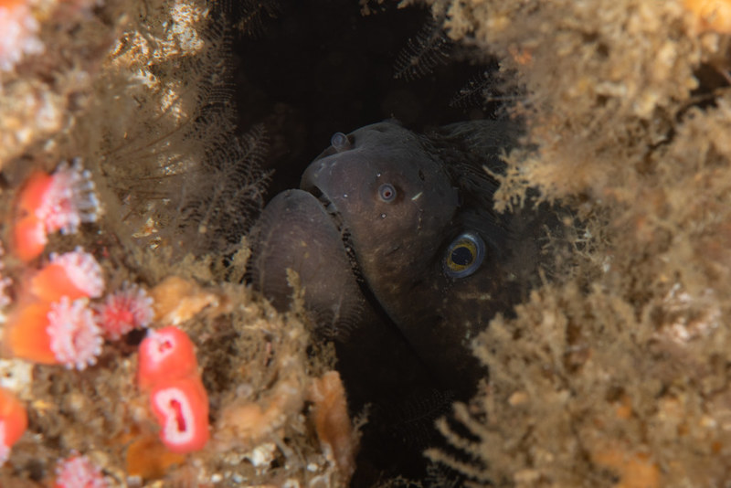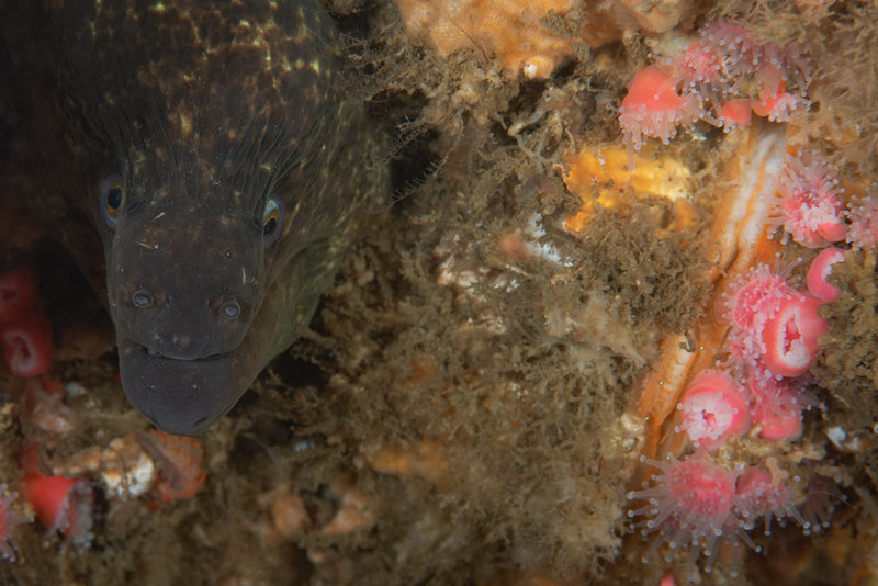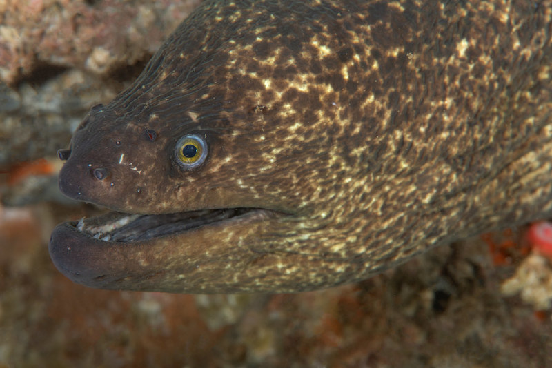 Visibility was poor at both sites. At Hawthorne Reef, I found a moray eel in a crack. I had my macro lens so I could only catch its face as it swam out of its den and past me.