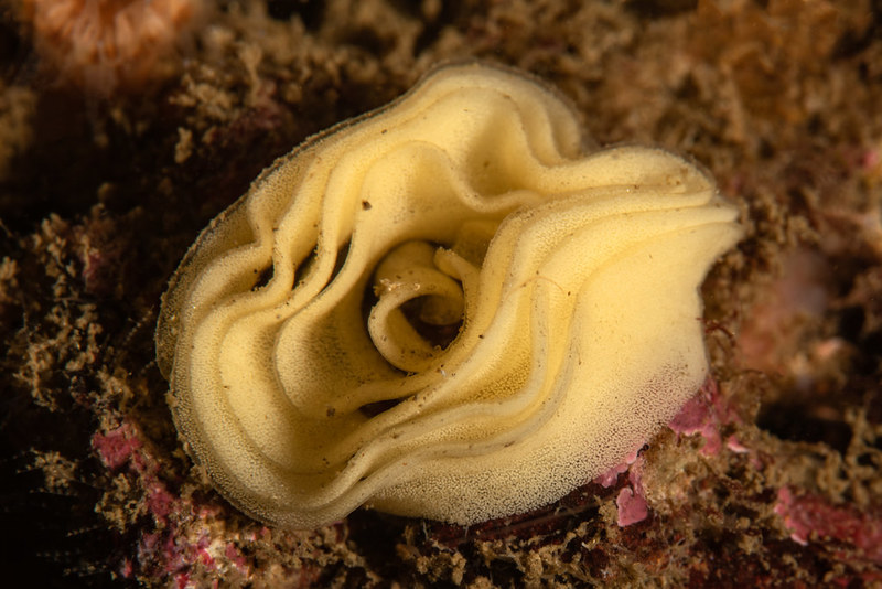 Nudibranch egg ribbon, probably Peltodoris nobilis