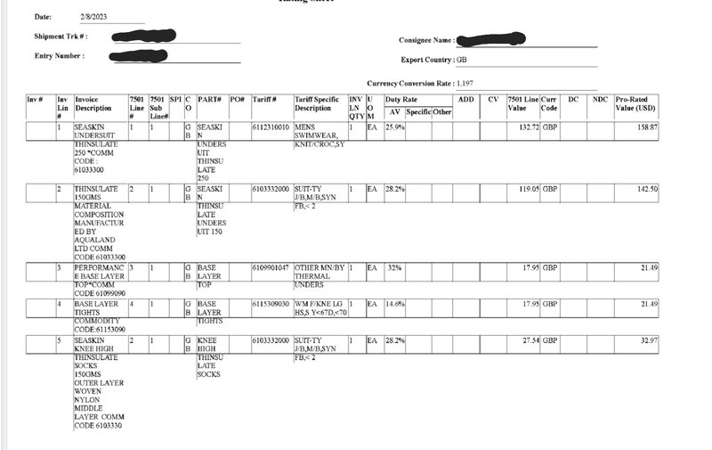 That’s odd with the men’s swimwear. I wonder what Seaskin puts on their export docs. The first six digits are going to be the same. The undersuit should be thermal/insulated, like the base layers. Weird. Everything in the garment chapters has really high duty.