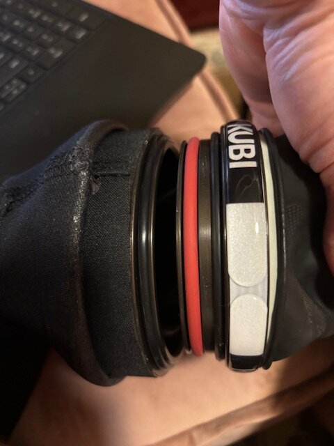 The other thing that will help is a bit of spit rubbed onto the glove side red o-ring. Kubi recommends against silicone grease but I used that for over 1 year. Now I just lick my thumb and run that over the red o- ring before donning